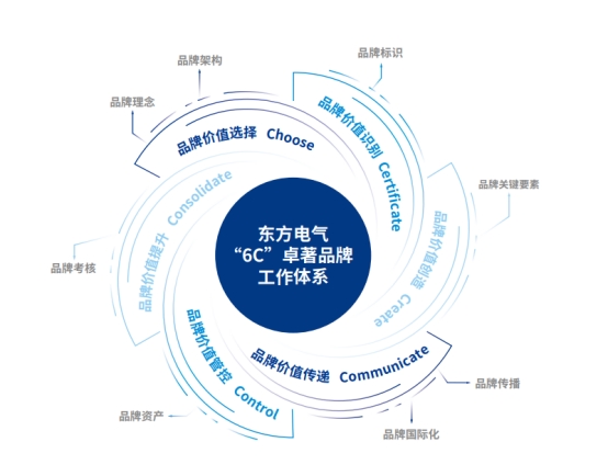 明确品牌价值选择,明确高端装备制造定位。以服务国家战略、创新能源未来、赋能美好生活为导向,构建独具特色的品牌理念体系,明确品牌愿景、品牌使命、品牌价值观、品牌定位、品牌核心价值主张、品牌个性等要素。采用以统一品牌架构为主,少量独立品牌、背书品牌的复合式品牌架构模式,其中,“DEC”统一品牌集中传达整体形象,“东汽精神”文化品牌”、“东方心”党建品牌分别传递相关领域价值承诺。